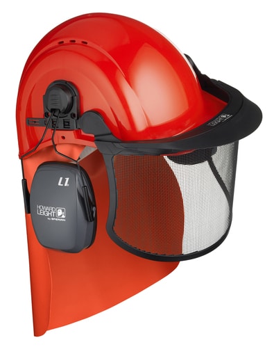 Pantalla de malla (ref: 1017800): flexible, duradera y fácil de ajustar; visor desmontable; protección para el cuello integrada que ofrece protección de los escombros y la intemperie.