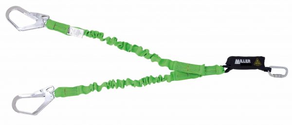 Cinta en forma de “Y” cuyo conector al arnés es un mosquetón de ¼ de giro de acero CS20. Los dos conectores de anclaje es un mosquetón de andamio, gran abertura de aluminio de 55 mm.Descripción técnica: