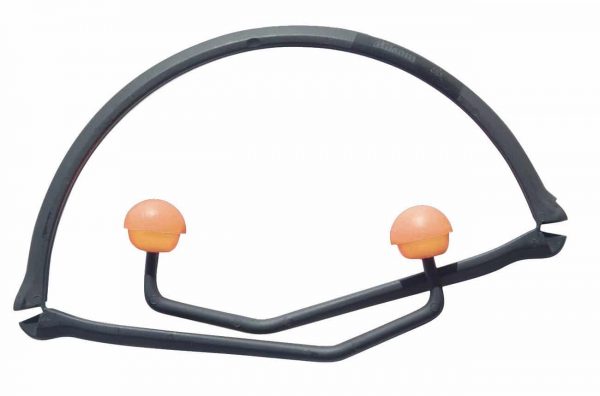 Tapones de espuma de poliuretano y arnés de polipropileno.