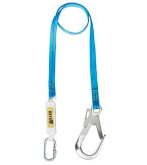 Cinta de amarre con absorbedor de energía de 2 metros con dos conectores. El conector al arnés es un mosquetón de rosca de acero CS20 y el conector de anclaje es un mosquetón de andamio, gran abertura de aluminio de 65 mm.Descripción técnica: